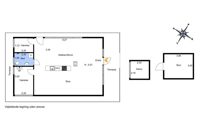 Boligen er moderne indrettet med et kæmpestort og kombineret køkken-alrum og stue, to værelser og hems med loft-til-kip. Der er skønne lysindfald, og et nærmest pittoresk view over den smukke grund, som sælger gennem mange år, har bearbejdet og skabt efter områdets og naturens helt egen ånd. Gavlen mod nordvest danner rammen for husets to soveværelser samt det nyistandsatte badeværelse. I alt 84 meget velindrettede kvadratmeter.