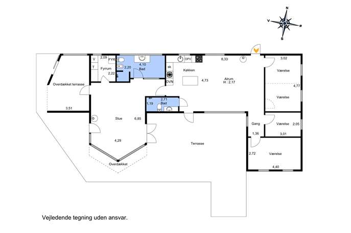 Indenfor bydes man velkommen i et hus fyldt med sjæl og varme. Husets hjerte er det store, lyse køkken/alrum, hvor en brændeovn spreder hygge, og hvor der er god plads til både samvær og gæster. Køkkenøen samler familien, mens der kokkereres, og de store vinduer trækker dagslyset ind. Den rummelige stue, som kom til i 2008, føles som en forlængelse af naturen udenfor – med højt til loftet, store vinduespartier og endnu en brændeovn, som giver varme på kølige aftener. Huset rummer desuden tre gode værelser (oprindeligt fire) og hele to badeværelser. Udenfor venter de dejlige terrasser: en overdækket, som kan nydes året rundt, og en solrig terrasse med stalddør direkte fra alrummet. Her skaber husets hesteskoform en naturlig lækrog, perfekt til lange sommeraftener. Drivhuset fungerer oplagt som hyggeligt orangeri, og ejendommen fuldendes af en stor carport, brændeskur og et stort hobbyrum.