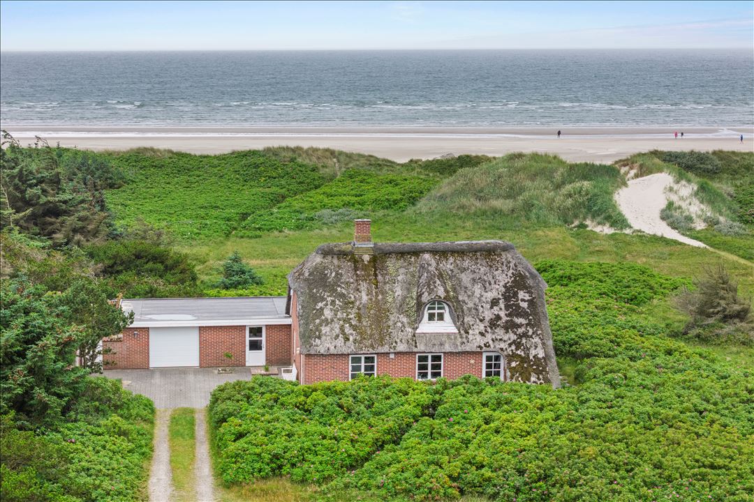 På en helt unik grund i det pragtfulde Blåvand udbydes nu utrolig pænt og velholdt fritidshus. Huset er beliggende i 1. klitrække på en flot lyngbeplantet naturgrund - direkte opgrænsende til Danmarks bedste badestrand. Fra husets 1. sal er der en unik havudsigt som strækker sig helt fra Blåvand fyr over Vesterhavet til Horns Rev.