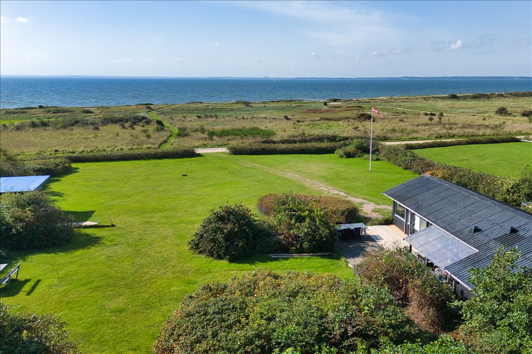 Den skønne, store grund er lettere niveau-delt og giver god plads til hygge- og udsigtskroge, her kan du finde steder med læ, og der er stadig god plads til leg og måske lidt snobrød og pølser over bål.