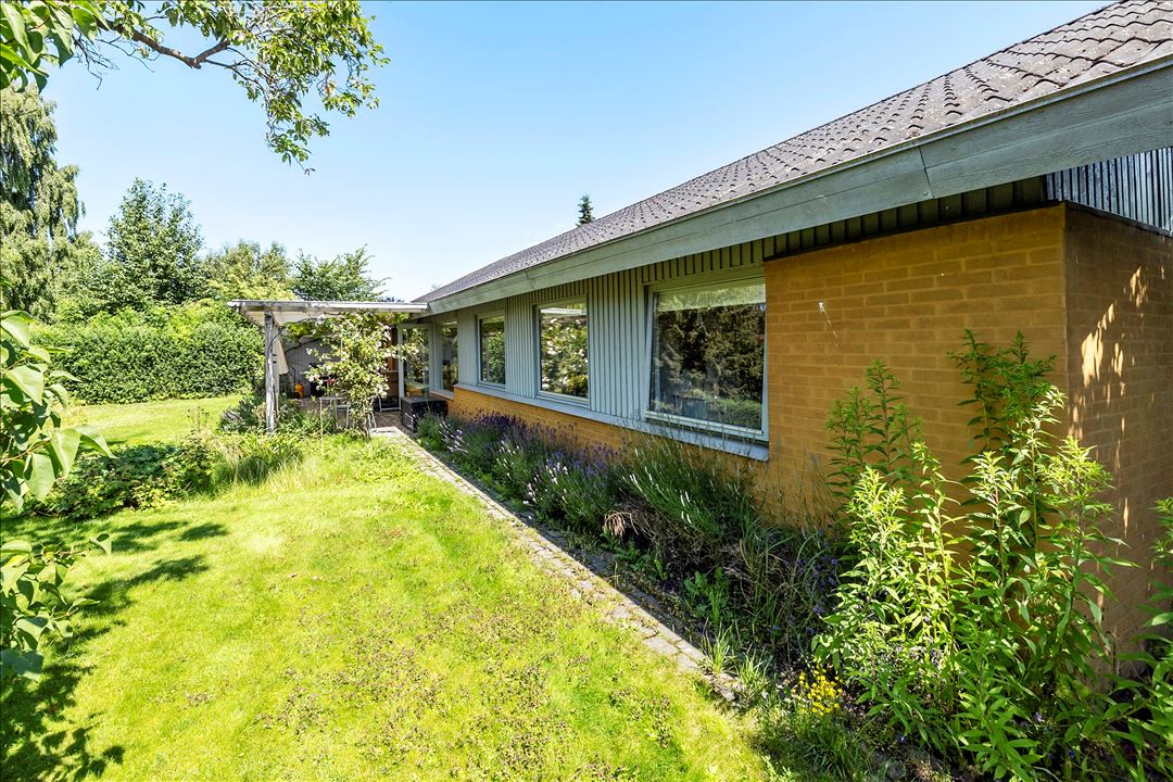 Med virkelig skøn beliggenhed - direkte ud til skov og grønne arealer - med den dejligste grønne udsigt, sælges velindrettet villa med 4 soveværelser.Huset er beliggende på Mørkager og er filtset op i smuk Skagensgul farve der passer smukt ind i omgivelserne.