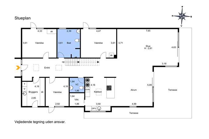 Køkken-alrummet er hjemmets hjerte, hvor madlavning og samvær går hånd i hånd. Herfra er der direkte adgang til en skøn terrasse, der er oplagt til hyggelige grillmiddage eller afslapning med udsigt til den frodige have. De 4 værelser giver fleksibilitet til at indrette både børneværelser, kontor og gæsteværelse, mens det luksuriøse for­æl­dresove­væ­rel­se med eget badeværelse tilbyder en privat oase. Desuden får I et la­ve­ner­gik­las­se hus med solceller.
