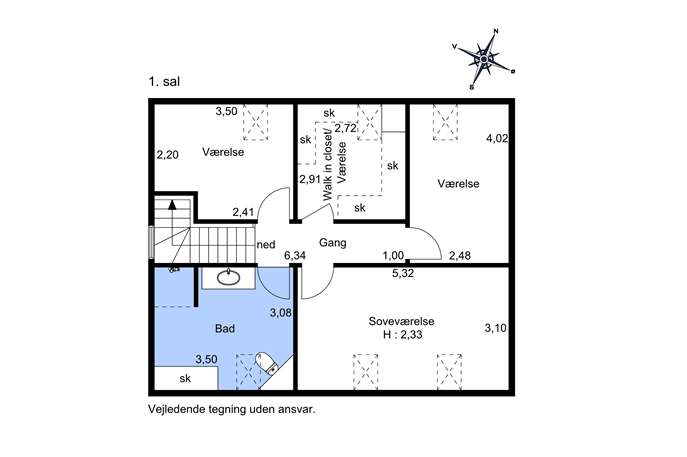 På 1. sal finder du fire gode soveværelser med smukke plankegulve. Ejendommen indeholder to lækre badeværelser, begge med bruseniche. Alle overflader i badeværelser samt køkken er Corian som understreger boligens høje kvalitet.