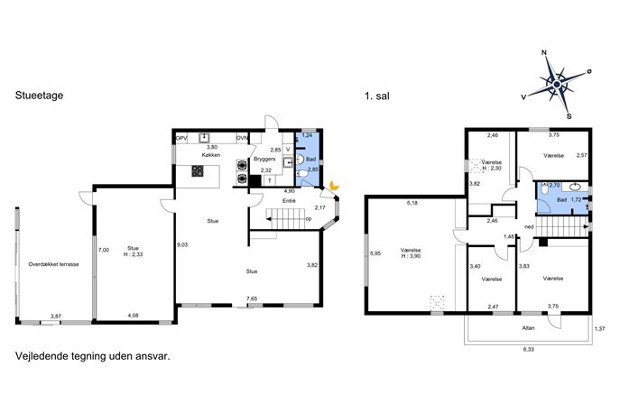 Førstesalen byder på endnu et badeværelse og flere gode værelser, hvor familiens forskellige behov kan tilgodeses. Et af højdepunkterne er et stort værelse, der i dag fungerer som legeområde og krearum – men her er masser af muligheder for at indrette eksempelvis multirum, hjemmekontor eller ekstra stue.