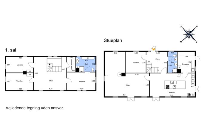 På førstesalen bliver du mødt af en stor, åben repos/opholdsrum med loft til kip, masser af lys og god plads til gamerområde, kontor eller ekstra stue. Her findes tre gode værelser, walk-in-closet samt et flot badeværelse med toilet, håndvaskarrangement og bruseniche.