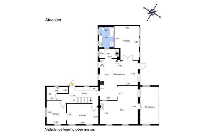 Ejendommen indeholder bl.a.: Entré med god plads til overtøj, godt med bordplads og trappe til 1. sal. 2 gode værelser, begge med dejligt lysindfald. Køkken-alrum med udgang mod syd, god plads til spisebord m.m. Lys stue med hyggelig atmosfære og flot indbygget pejs. Badeværelse med badekar, toilet og håndvask. Stort soveværelse. Disponibelt rum som kan laves til ekstra toilet/badeværelse.