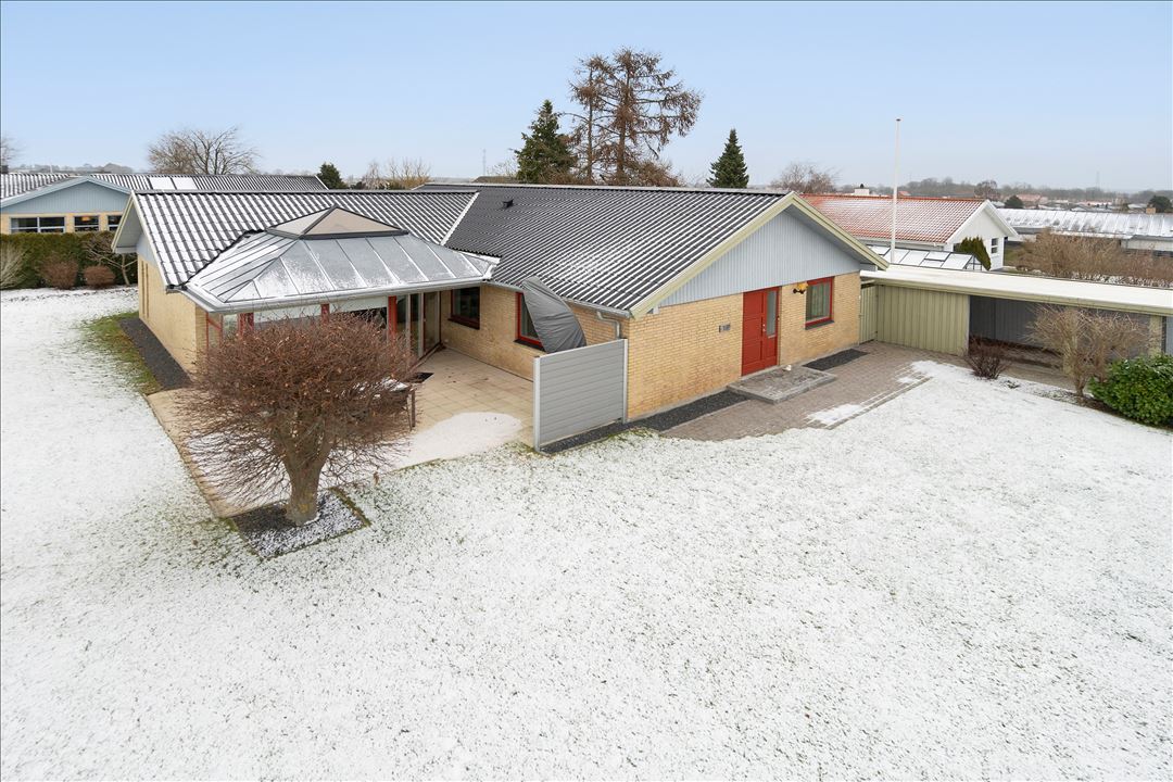 Indenfor byder boligen på lyse og indbydende rum, der skaber en behagelig atmosfære. De fem rum er velindrettede og kan nemt tilpasses jeres behov, hvad enten det er børneværelser, gæsteværelser, kontorplads eller hobby. Det fine spise-køkken fungerer som husets hjerte, hvor familien kan samles til måltider og hyggelige stunder. Herfra er der også adgang til den skønne stue, der med sine store vinduespartier sikrer et dejligt lysindfald og udsigt til haven.