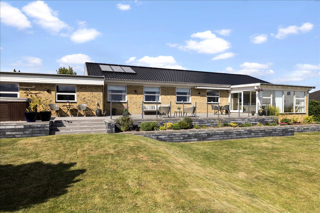 Skæppestien 35 i Tune byder på en enestående mulighed for at erhverve en højt beliggende villa med en fantastisk udsigt over det charmerende lokalområde. Med et boligareal på 159 m² fordelt på ét plan, er denne villa perfekt til familien, der ønsker god plads og moderne bekvemmeligheder. Boligen rummer 3 soveværelser, men der er rig mulighed for at tilpasse rummene efter behov, eksempelvis til kontor eller hobbyrum.Villaen er opført på en stor grund på 1.224 m², hvilket giver masser af plads til udendørs aktiviteter og afslapning. Den store terrasse med glasværn er ideel til hyggelige stunder med familie og venner, mens den lyse udestue giver mulighed for at nyde haven året rundt. Haven er velanlagt og nem at vedligeholde, hvilket giver jer mere tid til at nyde de mange faciliteter, som Tune byder på.
