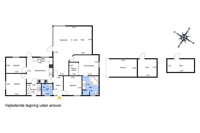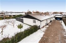 Husets hjerte er den store, lyse stue, der med sit fantastiske lysindfald skaber en indbydende atmosfære. Her er der rigelig plads til både spise- og sofaafdeling, og fra stuen er der direkte adgang til en stor flisebelagt terrasse, hvor man kan nyde de lange sommeraftener. Udover forældreafdelingen rummer boligen tre gode værelser, et stort køkken, endnu et badeværelse med bruseniche samt et praktisk bryggers. Gulvvarme er installeret i størstedelen af huset, undtagen i bryggers, entré og de to værelser mod vejen, hvilket sikrer en behagelig temperatur året rundt.