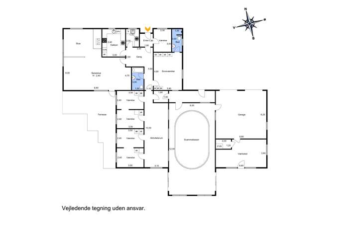 Ved en blind villavej i det hyggelige Christiansminde - en del af Kirke Såby - sælges denne meget rummelige etplansvilla. Foruden den ekstraordinært store grund byder ejendommen på muret dobbeltgarage/udhus værksted samt et stort overdækket lukket areal - mellem bolig og garage - hvor ejendommens 8 x 4 m. swimmingpool er opsat. Om bygningen fremover benyttes som pool-område, udestue, orangeri eller noget helt andet, er op til køber. Gulvet er isoleret, og køber kan evt. forlænge sæsonen i bygningen ved at færdiggøre gulvvarmen, hvor sælger har udført en del af forberedelsen ved at nedstøbe gulvvarmeslanger.