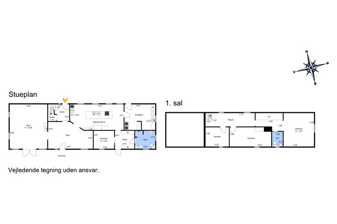 Stueplan indeholder: Stort bryggers, stort lækkert spisekøkken, spisestue, flot opholdsstue, soveværelse, badeværelse samt entre. 1. salen indeholder repos, 3 store værelser samt toilet.