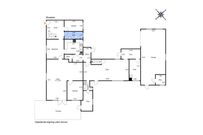 I stueplan finder du desuden et stort soveværelse samt en separat afdeling med egen indgang, værelse og badeværelse – ideel til gæster, teenagere eller dig, der ønsker et hjemmekontor med ro. På førstesalen finder du tre rummelige værelser, et lyst badeværelse og et multirum/alrum, der kan anvendes som legeplads, hobbyområde eller ekstra opholdsstue – mulighederne er mange.