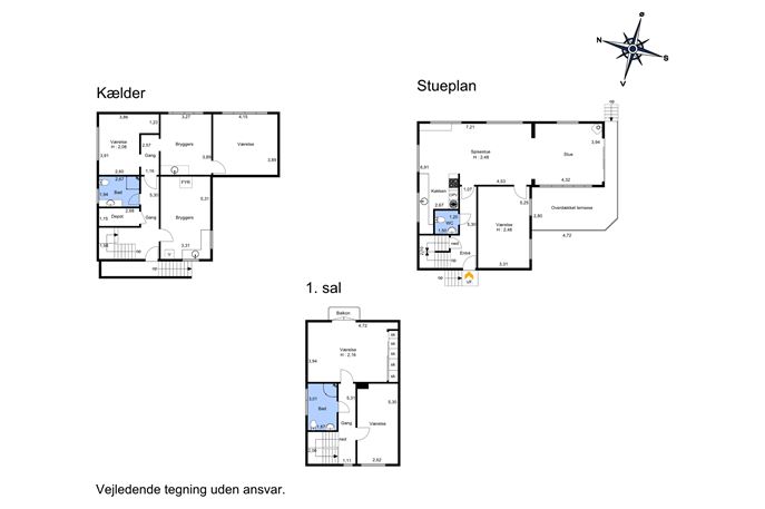 1. sal: 2 værelser - Badeværelse med bruseniche.