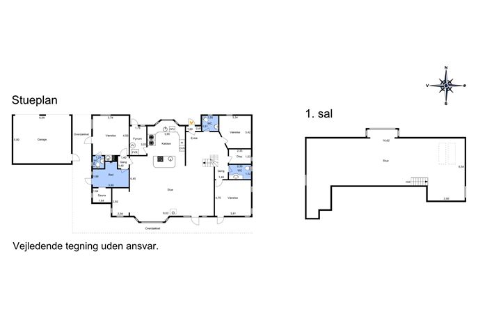 Villaen byder også på et badeværelse med sauna, fyr-/teknikrum samt carport med plads til to biler.