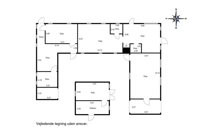 Stuehuset rummer ca. 155 m² bolig og fremstår indbydende med have orienteret mod syd, hvor solen kan nydes det meste af dagen. På førstesalen findes derudover to store disponible rum, som giver ekstra indretningsfrihed - oplagt til værelser, kontor eller hobby, men som ikke er registreret som boligareal på BBR.