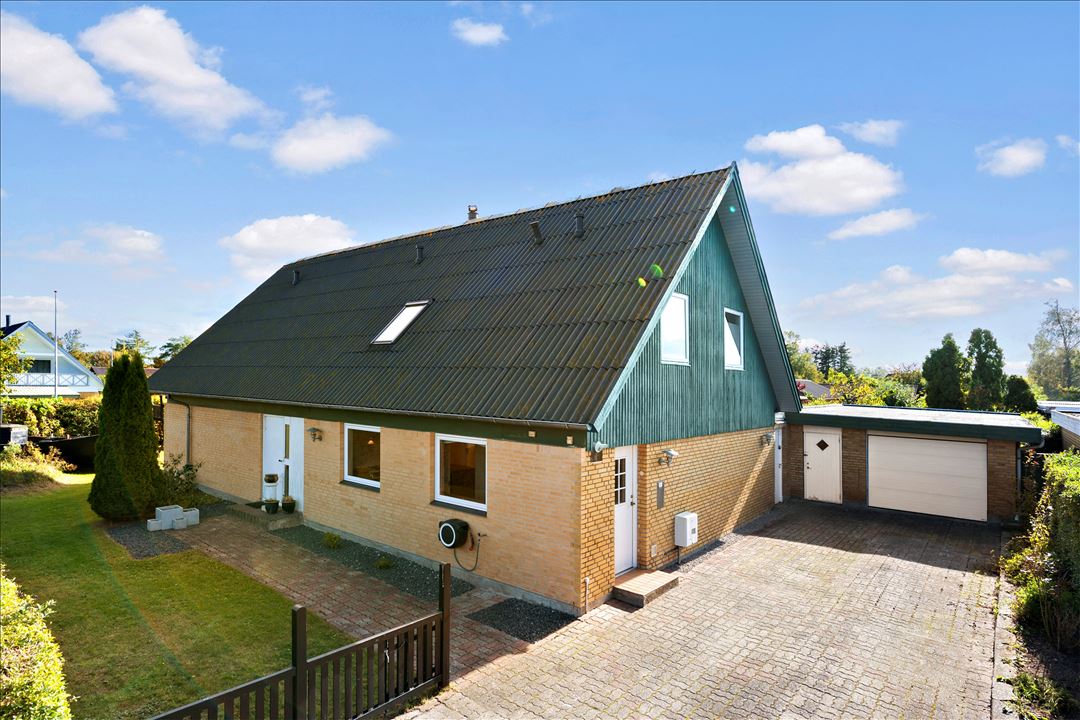 På Kildegårdsvej 19 i Fensmark finder I denne rummelige bolig på hele 218 kvm, beliggende på en 945 kvm grund med masser af muligheder for både børnefamilien og jer, der ønsker ekstra albuerum. Med sine mange disponible kvadratmeter, hyggelige kroge og en 50 kvm garage med værkstedsafdeling er her rammerne til at skabe jeres helt egen drømmebolig.Boligen byder blandt andet på et funktionelt bryggers med god opbevaringsplads, køkken med åbning mod stuen. Her er der rigeligt plads til både spise- samt opholdsafdeling – og der er direkte udgang til den solrige overdækkede terrasse og haven. Her findes i øvrigt også tre gode værelser og et autentisk badeværelse med både kar og bruseniche.