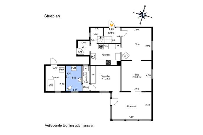 Indendørs byder huset på hele 5 gode rummelige værelser, hvilket giver rig mulighed for både børneværelser, kontor og gæsteværelse. Dertil kommer to store, lyse stuer, hvor den ene har pillebrændeovn, som skaber god plads til både hverdag og gæstebesøg. Derudover er der en stor udestue, med god plads til hygge og sammenvær.