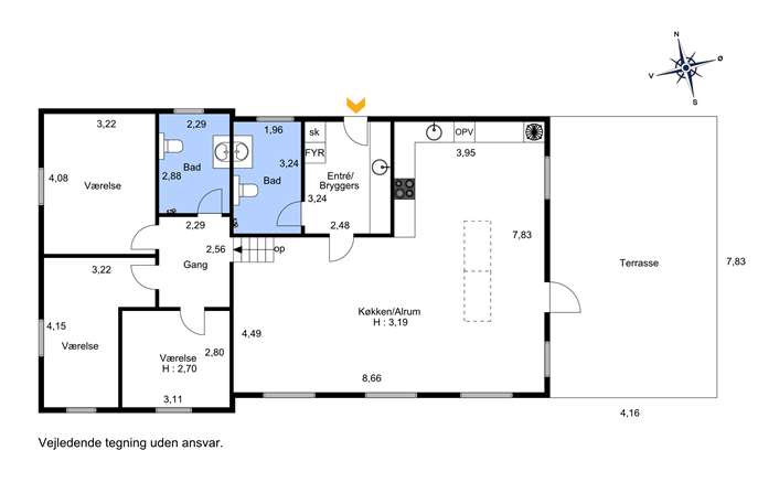 Du bydes velkommen i en kombineret entré og bryggers, som giver god plads til hverdagens praktiske behov. Herfra er der adgang til et nyt og rummeligt badeværelse. Boligens naturlige samlingspunkt er den store og lyse stue-/køkken-alrum med loft til kip, som skaber en fantastisk rumfornemmelse og et skønt lysindfald.