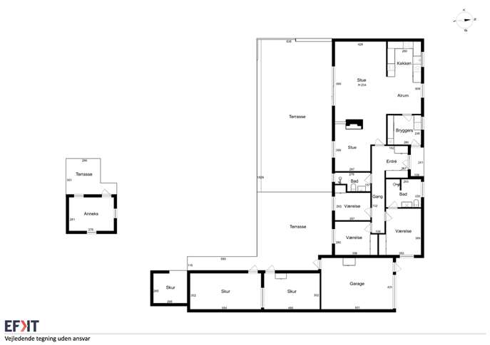 Annekset giver ekstra muligheder, og sammen med garage og udhuse får I masser af funktionel plads til hverdagen.