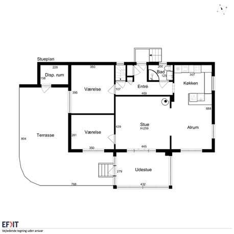 104 m2 bolig som indeholder: En lys entré og fordelingsgang med adgang til kælderen. Badeværelset, renoveret i 2015, byder på gulvvarme, væghængt toilet og bruseniche med stilfuld glaslåge. Det åbne HTH-køkken fra 2016 er indrettet med hvide skuffeelementer og flyder naturligt over i alrummet med plads til spisebordet. Herfra er der åben forbindelse til den indbydende dagligstue med brændeovn - perfekt til hyggelige aftener - og videre ud i en skøn udestue, der forbinder hjemmet med haven. Et lyst børneværelse og et soveværelse med udsigt til haven fuldender stueplan.