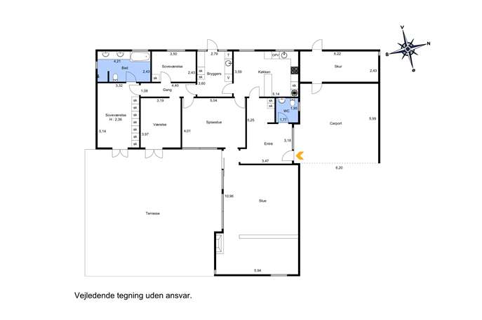 Boligen er indrettet med store, indbydende rum, der indbyder til både hverdag og fest. Fra den rummelige entré er der adgang til et praktisk gæstetoilet, og den store stue åbner op til et helt privat, solrigt gårdhavemiljø, hvor I kan nyde uforstyrrede stunder. Det store spisekøkken er ideelt til familiemiddage og hyggelige sammenkomster, mens det rummelige bryggers tilbyder masser af op­be­va­rings­plads og funktionalitet.