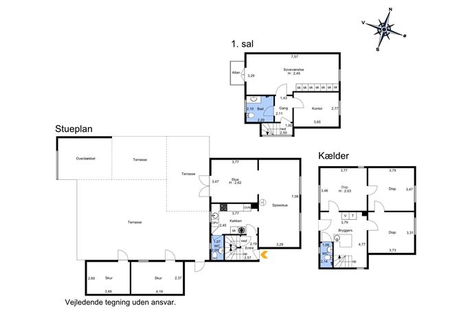 Kælderen rummer yderligere mange anvendelsesmuligheder. Her er et stort og praktisk bryggers med gode vaskefaciliteter, et badeværelse, to disponible rum samt et ekstra rum, der kan anvendes efter behov – eksempelvis som teenageafdeling og hobbyrum.