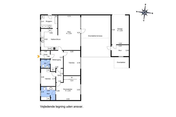 Planløsningen er både praktisk og gennemtænkt. Boligen rummer tre indbydende værelser, som er placeret samlet i boligens værelsesafdeling sammen med badeværelse og gæstetoilet. Opholdsrummene ligger centralt i huset, hvor køkken-alrummet og stuen er placeret i åben forbindelse og skaber et naturligt samlingspunkt i hverdagen. Køkkenet fremstår opdateret og funktionelt med gode arbejdsflader og opbevaringsmuligheder, mens stuen har et behageligt lysindfald og god plads til både spise- og opholdsmøbler.