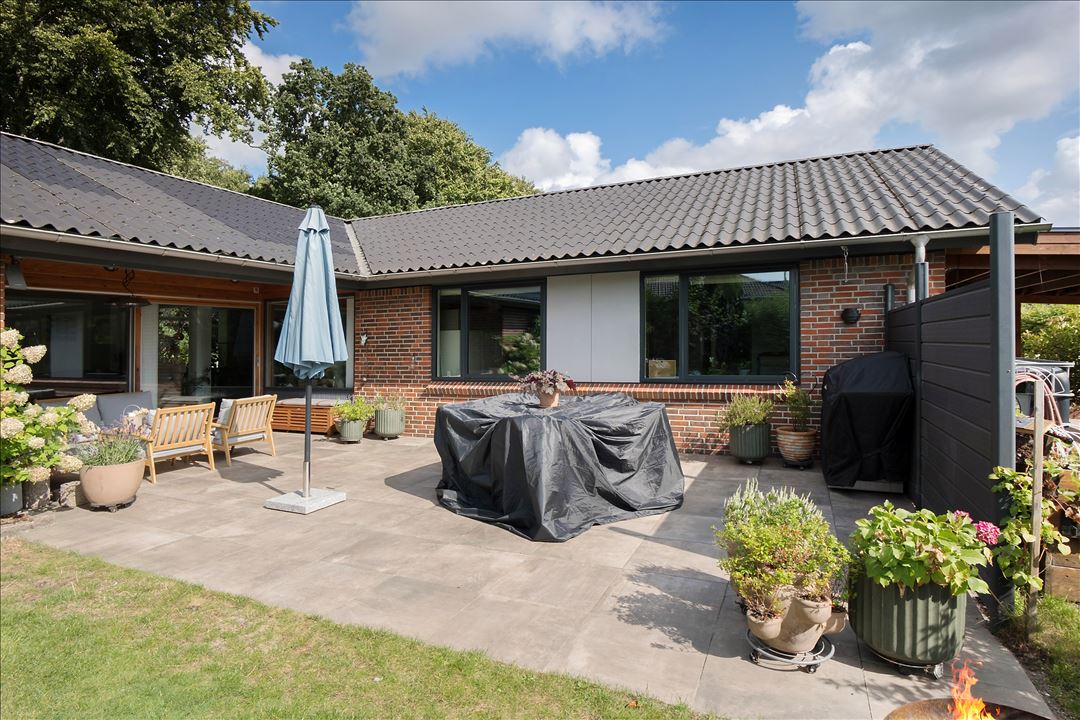 Med den høje boligstandard in mente kunne huset sagtens stå alene, men det ændrer ikke på, at I får en virkelig skøn og ugeneret have med i købet. En delvist overdækket terrasse ligger i krogen af huset på sydsiden, men det er alligevel svært at konkurrere med den fuldkommen private baghave. Det skønne udemiljø nyder godt af en helt unik og intim stemning med skoven som bagtæppe.