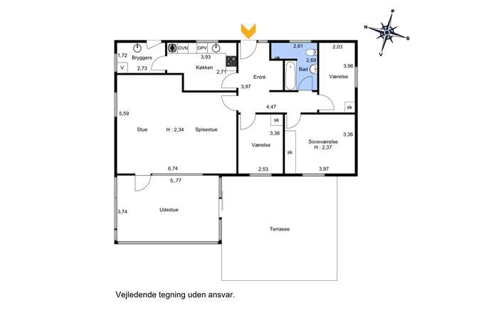 4/3 rum, 112 m²