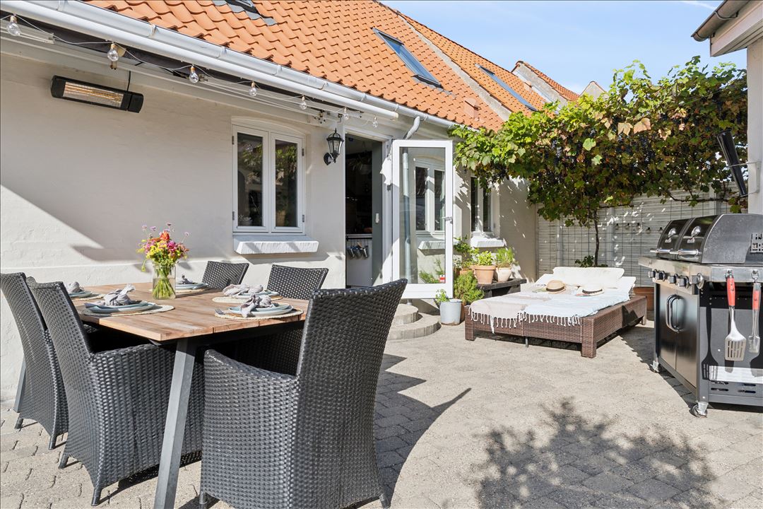 I stueetagen er der også en fin spisestue, der er forbundet med det flotte og funktionelle landkøkken, hvorfra der er udgang til den særdeles hyggelige og private gårdhave. Første sal er med loft til kip og udover et værelse, er der en hyggelig opholdsstue.