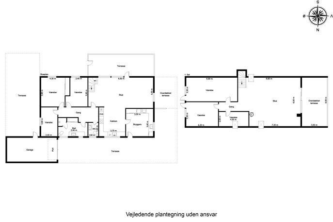Boligens 6 værelser giver rig mulighed for at indrette sig fleksibelt – hvad enten du har brug for børneværelser, kontor, hobbyrum eller gæsteværelse. Planløsningen er gennemtænkt med en tydelig opdeling mellem forældre- og børneafdeling, så alle kan trække sig tilbage og have sit eget private rum. De store, lyse værelser og de brede gangarealer bidrager til en behagelig og rummelig atmosfære i hele huset.