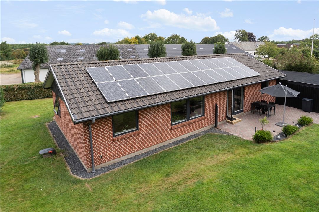 Som en ekstra bonus er der installeret solceller, der ikke blot giver dig en grønnere hverdag, men også bidrager til en energieffektiv bolig.