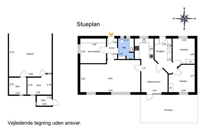 Udenfor finder du en dobbelt carport og en indkørsel med god plads til hele familiens biler.