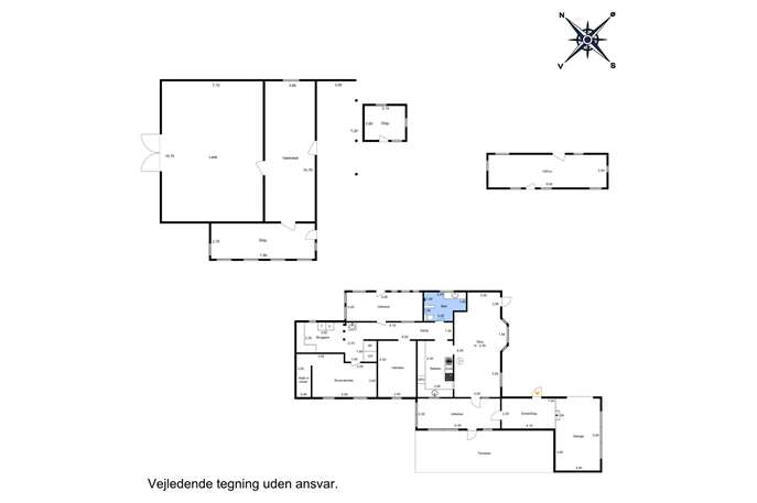Udearealerne er bestemt værd at fremhæve: Udover de mange ud­huskva­drat­me­ter består grunden af en dobbelt grund, hvilket giver usædvanligt god plads at boltre sig på, uanset om du drømmer om store køkkenhaver, leg, værk­steds­ak­ti­vi­te­ter eller bare luft og albuerum omkring dig.