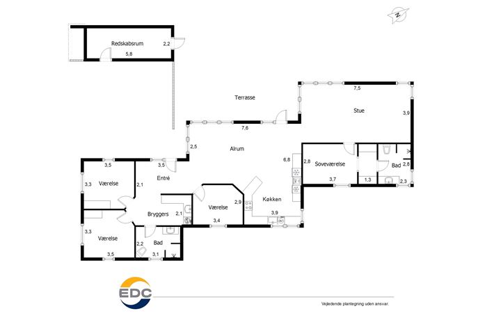I den ene ende af huset ligger en børneafdeling med to værelser og eget badeværelse, mens forældreafdelingen er placeret i modsatte ende med soveværelse og privat bad. Derudover får I et ekstra værelse, en veludformet entré i forbindelse med et bryggers, der tilbyder gode muligheder for opbevaring.
