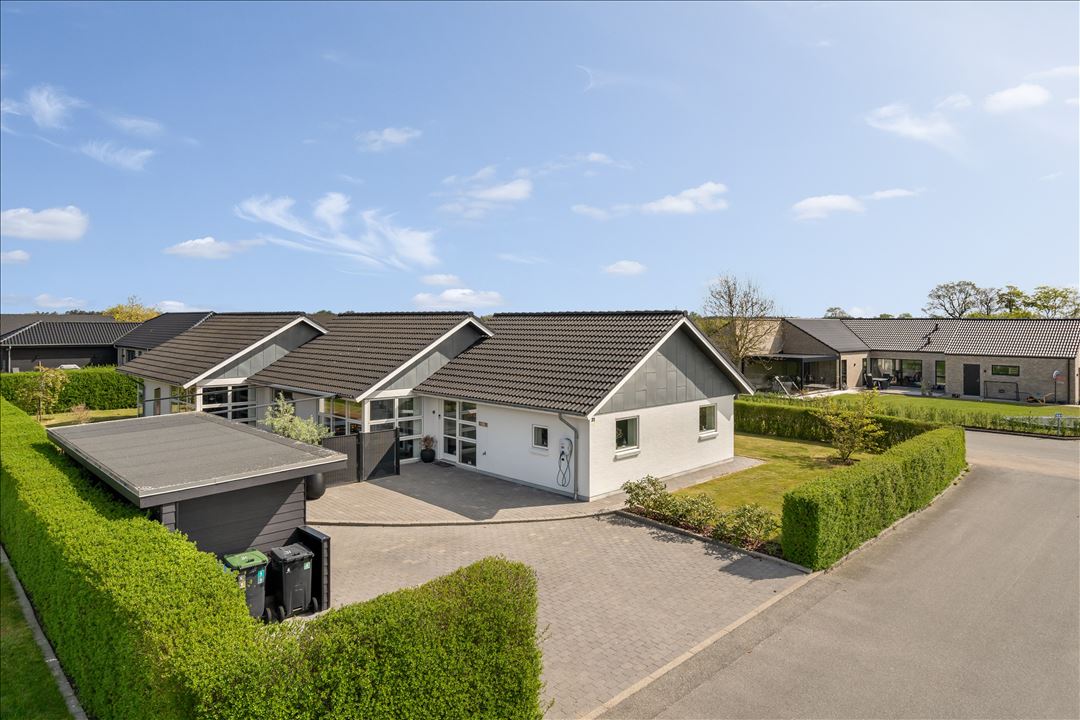 Her får I med andre ord en spændende, arkitekttegnet og 100% indflytningsklar kvalitetsvilla, hvor stil og funktionalitet går hånd i hånd. Bestil en fremvisning hos EDC i Varde.