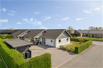 Villaen er opført på en 806 m2 stor grund, som er nem at holde og smukt afskærmet, så både børn og voksne kan nyde udelivet i fred og ro. Her er god plads til både trampolin, blomsterbede, grill og afslapning - og fra alrummet træder I direkte ud på en superflot træterrasse, som ligger perfekt i forhold til solen.