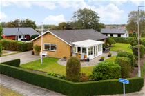Dejlig villa i attraktivt kvarter på lukket stikvej og med Skjerns Grønne Korridor i "baghaven". Her får du bl.a. meget flot have med plads til hygge og leg, bolig med tre værelser, vinkelstue samt havestue.Indretning: Entré med plads til vaskemaskine og tørretumbler. God bordplads og garderobe. Herfra går du ind i husets fordelingsgang. Det rummelige og lyse køkken har plads til spiseområde, og med gulvvarmen er du sikret god varmefordeling. Boligens vinkelstue giver mulighed for hygge foran brændeovnen, og det massive originale bøgeparketgulv giver stuen ekstra glød. Det store vinduesparti mod havestuen giver masser af lys til stuen og et flot kig til den velholdte have. Havestuen er isoleret, og herfra kan mange dage nydes.