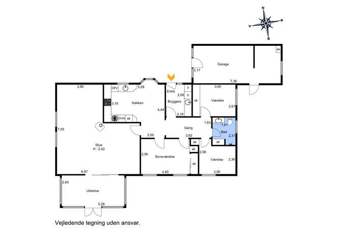 Til villaen er der garage, som i dag anvendes til opbevaring. Fra det bagvedliggende redskabsrum er der udgang til haven. Her er legeaktiviteter, en meget velanlagt have med flere fliseterrasser. Her kan solen nydes fra morgen til aften.