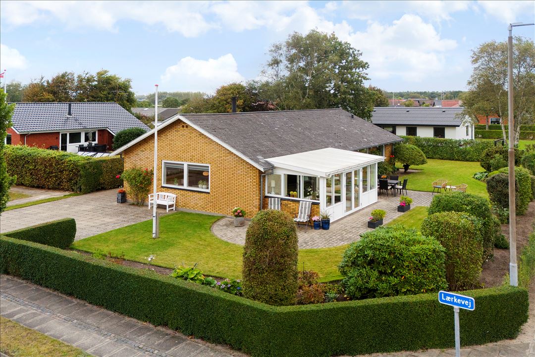 Dejlig villa i attraktivt kvarter på lukket stikvej og med Skjerns Grønne Korridor i "baghaven". Her får du bl.a. meget flot have med plads til hygge og leg, bolig med tre værelser, vinkelstue samt havestue.Indretning: Entré med plads til vaskemaskine og tørretumbler. God bordplads og garderobe. Herfra går du ind i husets fordelingsgang. Det rummelige og lyse køkken har plads til spiseområde, og med gulvvarmen er du sikret god varmefordeling. Boligens vinkelstue giver mulighed for hygge foran brændeovnen, og det massive originale bøgeparketgulv giver stuen ekstra glød. Det store vinduesparti mod havestuen giver masser af lys til stuen og et flot kig til den velholdte have. Havestuen er isoleret, og herfra kan mange dage nydes.