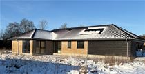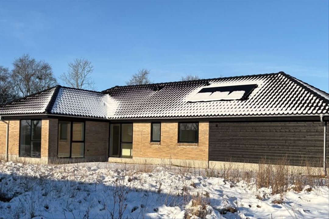 Opført på en 1.195 m² stor grund og med et boligareal på i alt 132 m² + 32 m² indbygget carport/redskabsrum. Opført i kvalitetsmaterialer, med afvalmede gavle, tagrender og nedløbsrør i stål, solceller, sorte tagsten, træ/alu vinduer samt gulvvarme med trådløs styring.