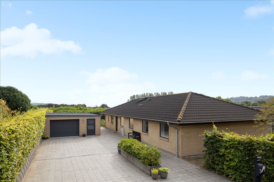 På en rolig, lukket villavej med kort afstand til både skole, indkøb og hverdagens nødvendigheder finder du denne rummelige og velindrettede villa på 172 m². Her får du en moderne bolig med plads til hele familien, hvor både funktionalitet og komfort er i fokus.Boligen byder dig velkommen i et stort og indbydende indgangsparti med tilhørende bryggers, der giver praktiske rammer til familiens hverdag.