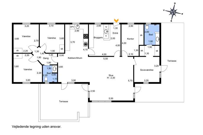 I den anden ende af huset finder du tre gode børneværelser og endnu et badeværelse – perfekt til børnefamilien.