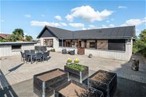 Udendørs finder du en lukket, flisebelagt terrasse, som er indrettet med små bede og plads til havemøbler. Her kan du sidde helt uforstyrret og nyde roen, mens der er god plads til både grill, afslapning og hyggelige stunder med familie og venner.