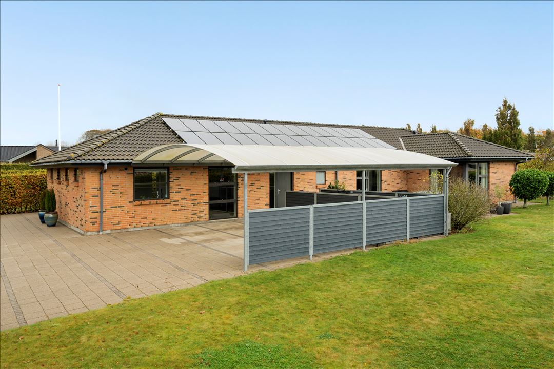 Stor og indflytningsklar familievilla med solceller, dobbelt carport, multirum og attraktiv beliggenhed tæt på skov og golfbane.