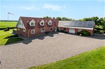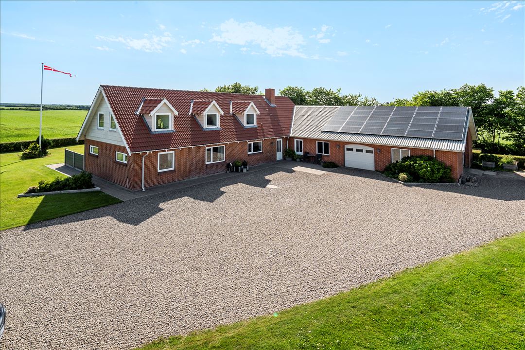 Halvanden kilometer vest for Fabjerg møder I denne velholdte landejendom, som egner sig fortrinligt til familien med behov for lidt mere plads end gennemsnittet. Stuehuset fremstår i flot stand efter en større ombygning i 1996, og sidenhen er en del af inventaret moderniseret. Energivenlige opgraderinger som solceller og luft-til-vand varmepumpe er også kommet til, og ikke mindst får I en stor grund på 4.500 m² foruden over 200 m² i udhuset.En lang, grusbelagt indkørsel leder ind til gårdspladsen, hvor stuehuset og udhuslængen ligger samlet. I har direkte forbindelse fra bryggerset til de mange bonuskvadratmeter, som kan udnyttes til mange formål, og garagen har for eksempel både en almindelig og en høj port. Derudover får I virkelig gode betingelser for værksted, hobbyrum og ekstra opbevaring, mens den skønne udestue i syd sørger for en hyggelig ramme til overgangsmånederne.
