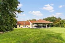 Stor velanlagt have med gammel randbeplantning, stor plæne, frodige bede, gode terrasser og en æstetisk sø med bro og et charmerende havehus med træterrasse.