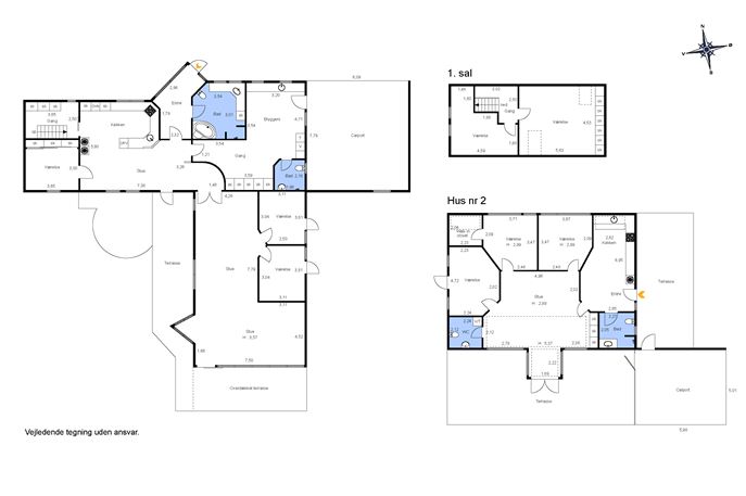 Västkust Stugan stuehus på 275 m2, som er fordelt på 2 plan. Stueetagen er indrettet med et stort, pænt bryggers, som er praktisk indrettet med direkte adgang fra carporten - her er linoliumsgulv med gulvvarme, megen skabsplads, grovkøkken samt plads til vaskefaciliteter. Stort køkken alrum i åben forbindelse med lys forstue, som har udgang til sydvendt terrasse og adgang til stor vinkelstue. Gulvvarme overalt dog på nær i stue og 2 værelser. Alrummet er indrettet med et snedkerlavet landkøkken med fyldningslåger af amerikansk kirsebær, hvidmalet loft og et godt lysindfald. Bemærk hjemmets store, indbydende vinkelstue, som er indrettet med loft til kip og stort sydvendt vinduesparti med udsigt til søen og udgang til stor, overdækket træterrasse. Vinkelstuen er indrettet som kombineret spise- og opholdsstue. Endvidere 3 gode, lyse værelser, 2 badeværelser, hvor af det ene er med muret bruseniche og hjørnebadekar, samt baggang med trappe til 1. sal, som er indrettet med et lyst værelse og et stort soveværelse med skabsvæg.