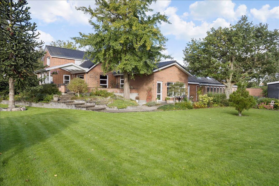 Ualmindelig velholdt, gedigen og rummelig villa med en skøn beliggenhed på stor, parklignende grund og med nyt, stilfuldt KVIK-køkken fra 2025. Ejendommen er på 183 kvm bolig og mindre kælder med vaskefaciliteter og fjernvarmeinstallation m.m. Stor, lækker garage med 2 elporte, ovenlysvinduer, troltektlofter, grovkøkken, og toilet (ej reg på BBR).