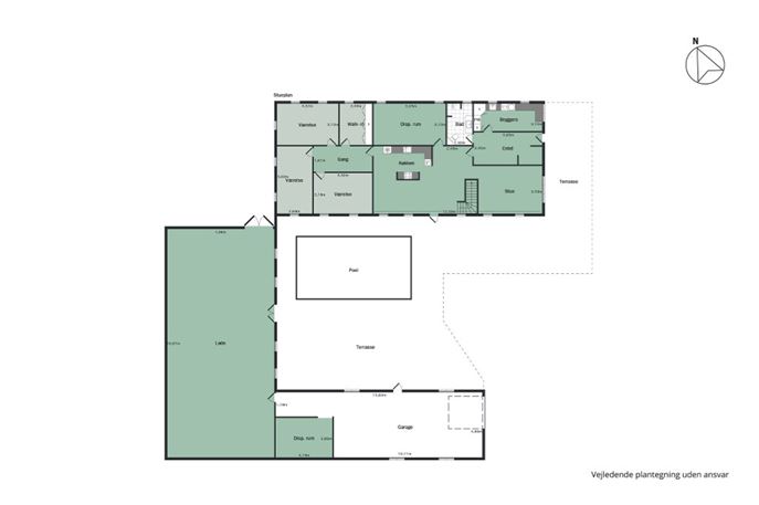 I gårdrummet kan du glæde dig til et flot terrassemiljø med swimmingpool, hvor sommerens solrige dage kan nydes i private rammer. Her er gode læforhold og plads til både afslapning og gæster, mens ejendommens have og grønne arealer indbyder til leg, dyrehold eller blot rolige stunder tæt på naturen.
